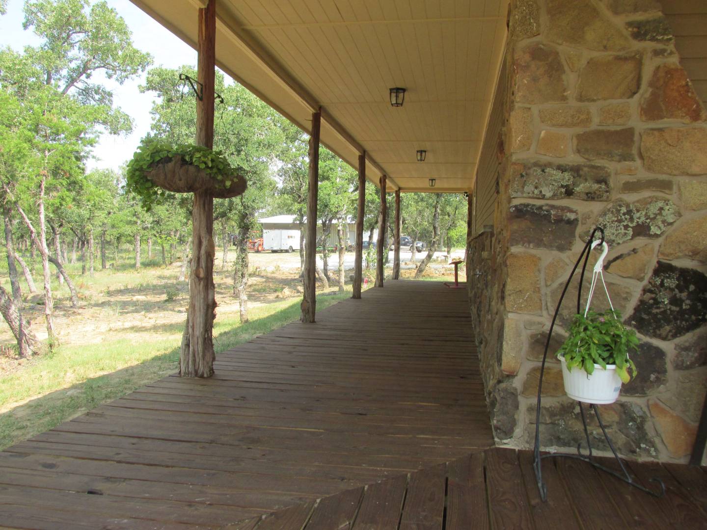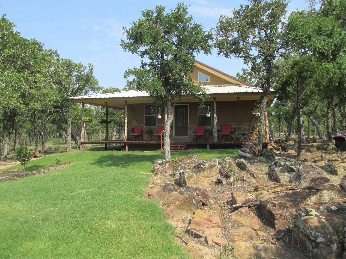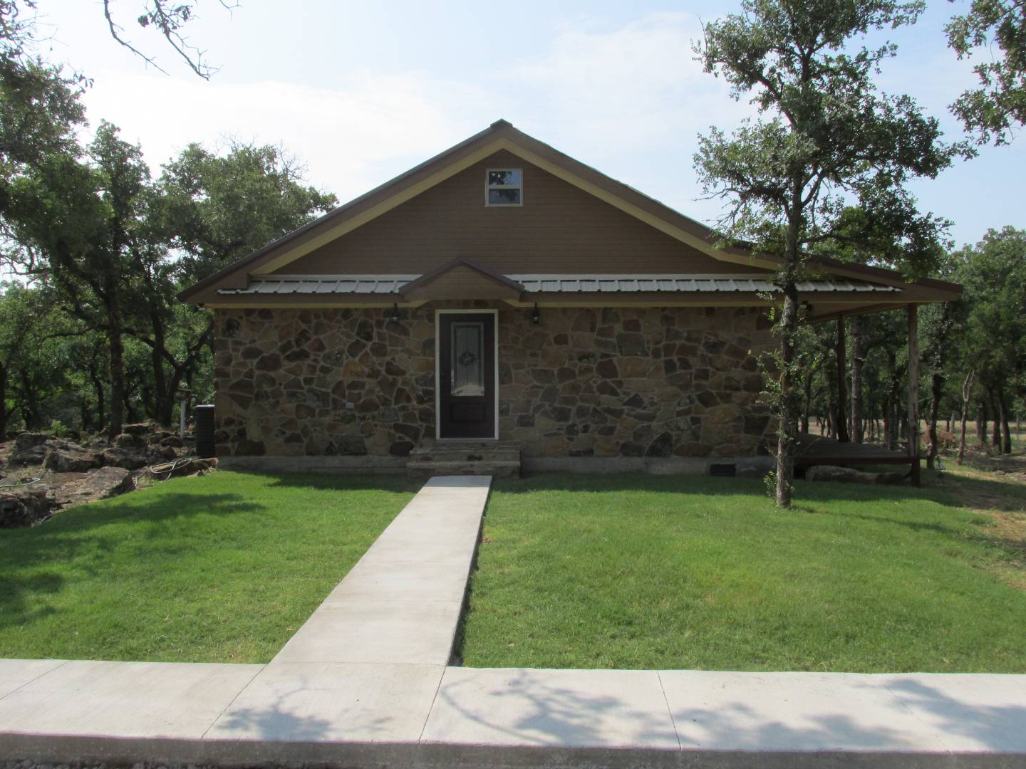 Adorable Rock and Frame House on 20 acres with 30'x50' Shop. Adjoining 10 acres may be available from another owner for total of 30 Acres. This adorable newly built Rock and Frame House sits on the edge of a rock bluff overlooking Turkey Creek and a lush bottomland with abundant wildlife. The home has covered porches on the west and south side for relaxation and enjoyment of the outdoors. Moss covered rocks surround the home. This is an incredible outdoor paradise and recreational property located just one hour west of Fort Worth and on the way to Possum Kingdom Lake. There is a master bedroom and bath downstairs and also a nice sized guest bedroom and bath downstairs. Upstairs is a loft with a sitting or office area. There is also an additional bunk room upstairs for the grandkids. The home is total electric with the owners stating that their electric bill usually runs between $50 and $100. The living room has vaulted ceilings, exposed real wood beams and is built out in the rustic style that so many people appreciate. The kitchen is open to the living room and an adjoining breakfast nook. The kitchen has a double oven stove and plenty of room to entertain guest. The nearby field is planted as a food plot for attracting wildlife. Turkey Creek runs along the south boundary and through part of the property. Trophy whitetail deer, wild hogs, and turkey can be seen from the covered porches of the home. Another area of bottom land is across another creek that drains from the north. All along the bottom land are huge oak and pecan trees and other hardwoods. This makes for an outdoor paradise! In addition to the creek a large pond has been recently built and stocked with fish. There is a 200 foot deep water well that supplies the home. The well was drilled last year and tested out at 10 gpm making for a good flow rate. There is a 30' X 50' insulated metal storage building/shop with concrete floors. Attached to it is a 15' X 55' covered carport/storage area. By all accounts this is a turnkey recreational property for the right buyer.