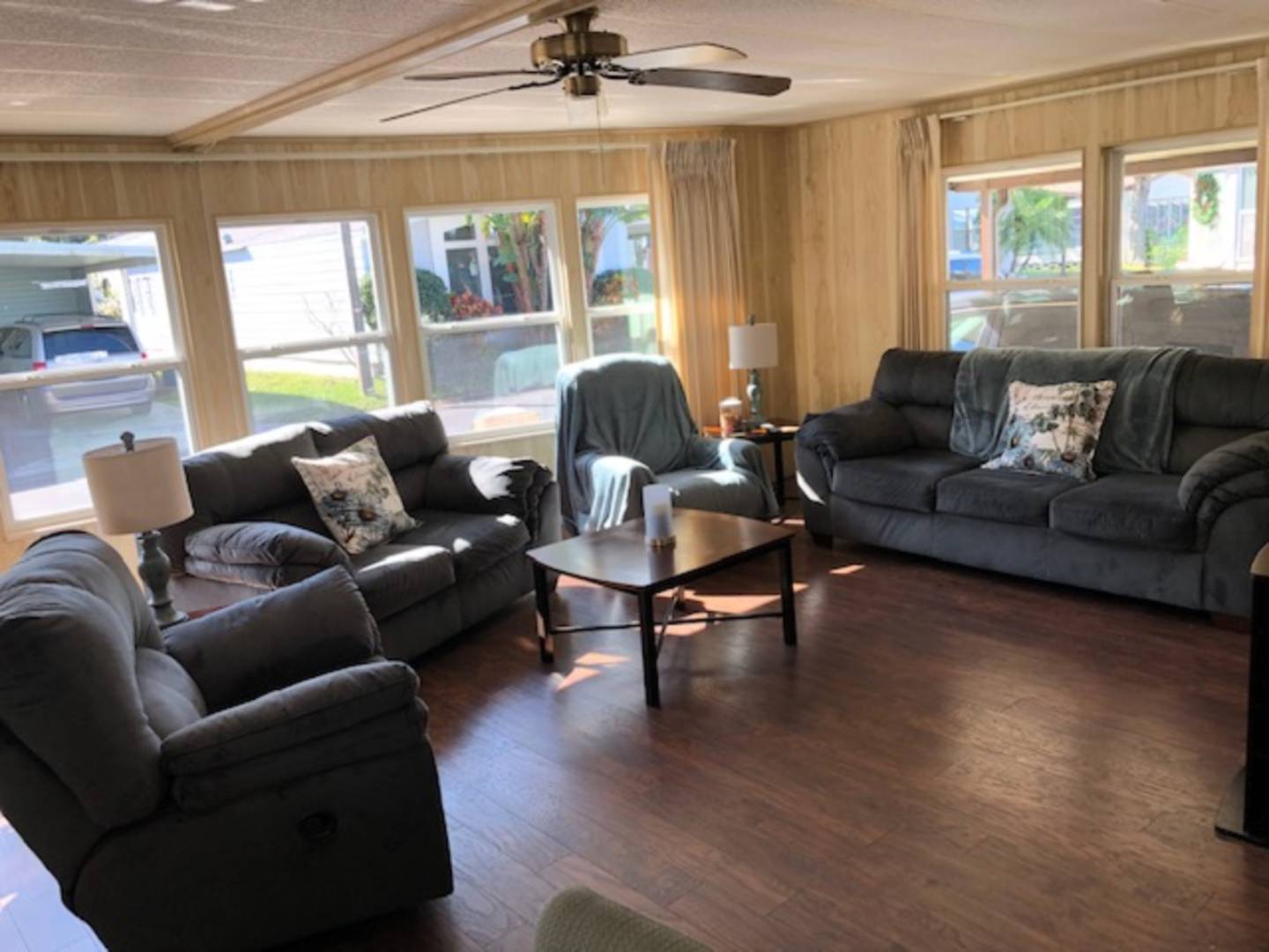Southwind is a pet friendly 55+ community conveniently located to shopping, beaches, golf and entertainment. Southwind is in the heart of historic Palm Harbor Florida just 2 miles from Honeymoon Island with sun drenched beaches and pristine Florida landscape. Extensive shorelines abound so the fishing is fabulous. Limitless recreation activities are found in various Pinellas County parks, and the Pinellas Trail is just minutes away from us. Southwind's community clubhouse offers a banquet hall with full kitchen, heated swimming pool, billiards room, library, shuffleboard and horseshoe courts. An active social calendar offering classes in aquatic-exercises / arts & crafts / card & board games / dinners & dancing / BINGO and much more! This 1985 home is being sold TURN-KEY. Just bring your toothbrushes and clothes and make this home your own! This living room of this home is huge. It is 26 feet wide and spans the whole length of the home. It features laminate flooring, tons of windows for optimal light, updated furniture and a front door entry. The kitchen and dining room are very large as well. The kitchen features a huge pantry, upgraded cabinets, neutral paint, tons of counter space, a tile backsplash, tile flooring and a double stainless steel sink. The dining room is open to the kitchen and living room and has a large built-in, upgraded lighting and laminate flooring. The master bedroom is huge. It has a huge walk-in closet, king size furniture and has been newly repainted in neutral colors. The master bath has a huge vanity, new toilet, step in shower, laminate flooring and a large linen closet. The second bedroom features a large walk-in closet, neutral walls and laminate flooring. The guest bath features a tub/shower combo, tile flooring, comfort height toilet, a large vanity and a cute corner shelf. The Florida room is a great bonus room. It features vertical blinds and indoor/outdoor carpet. The shed is large and offers great storage and a newer washer/dryer. There is a breezeway to the backyard behind the shed as well. The laminate flooring was completed in 2015, the windows were replaced in 2017, the plumbing is PVC and the gutters were flushed in July of 2018. The home features a sprinkler system for the lawn and is move in ready! All listing information is deemed reliable but not guaranteed and should be independently verified through personal inspection by appropriate professionals. All Florida Mobile Home Sales Inc. cannot guarantee or warrant the accuracy of this information or condition of this property. The buyer assumes full responsibility for obtaining all current rates of lot rent, fees, and pass-on costs. Additionally, the buyer is responsible for obtaining all rules, regulations, pet policies, etc., associated with the community, park, or home from the community/park manager. All Florida Mobile Home Sales Inc is not responsible for quoting of said fees or policies. Contact Karen at 727-459-5448 or for more info on this home.